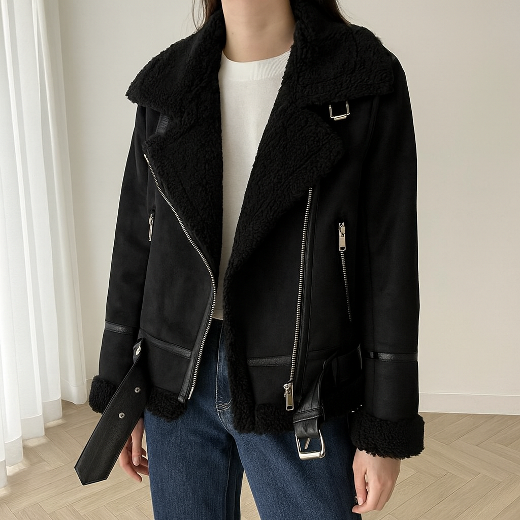 Voeg de Kira Fleece Gevoerde Bikerjas toe aan je garderobe en straal stijl, warmte en zelfvertrouwen uit – elke dag opnieuw.