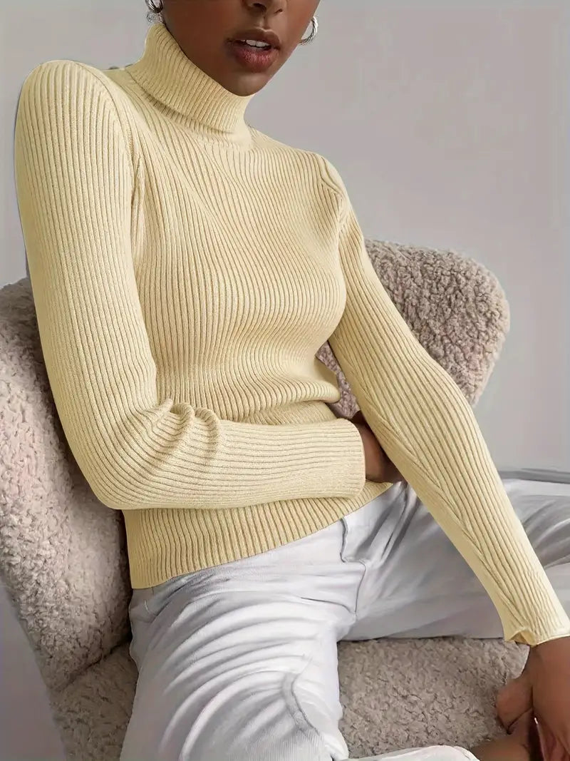 De Mira is een geribbelde turtlenecktrui die stijl en comfort combineert. Met een aansluitend ontwerp en zachte textuur is deze trui perfect voor chique layering in de koelere maanden. Een essentieel item voor een minimalistische garderobe.